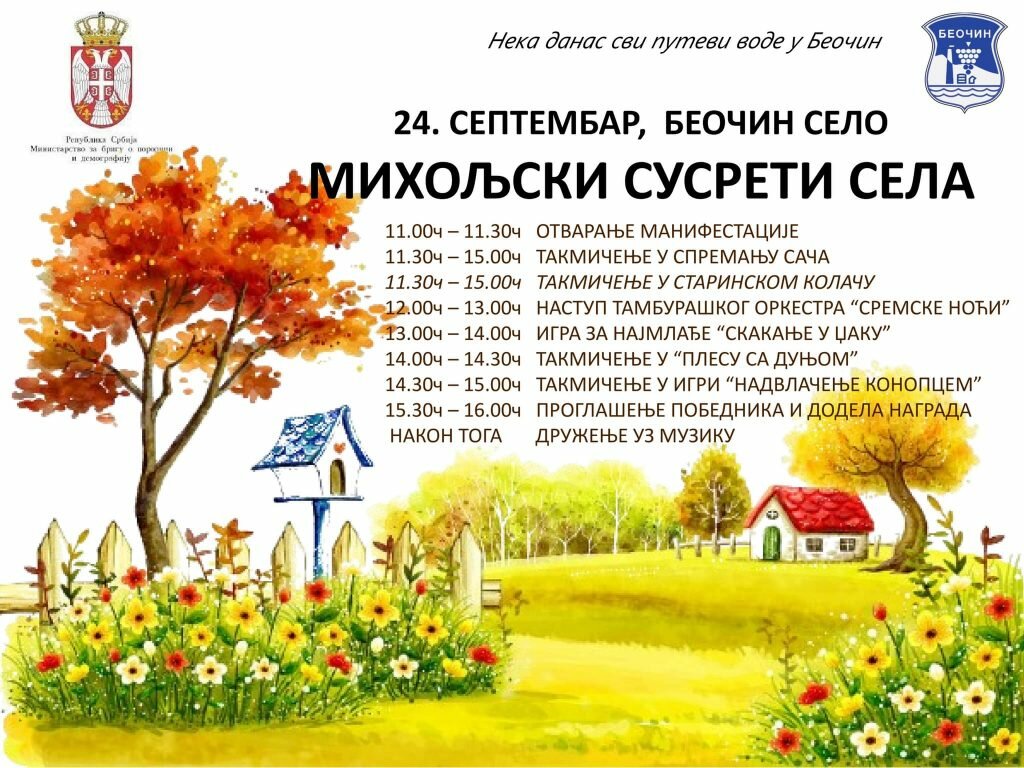 „Miholjski susreti sela“ su projekat Ministarstva za brigu o selu Republike Srbije koji se u saradnji sa opštinama širom naše zemlje realizuje u cilju negovanja kulture, tradicije i unapređenja društvenog života u selima. Učešće y “Miholjskim susretima” je ove godine uzelo 87 lokalnih samouprava među kojima je i opština Beočin, koja u saradnji sa Mesnom zajednicom Beočin selo organizuje ovaj događaj.
