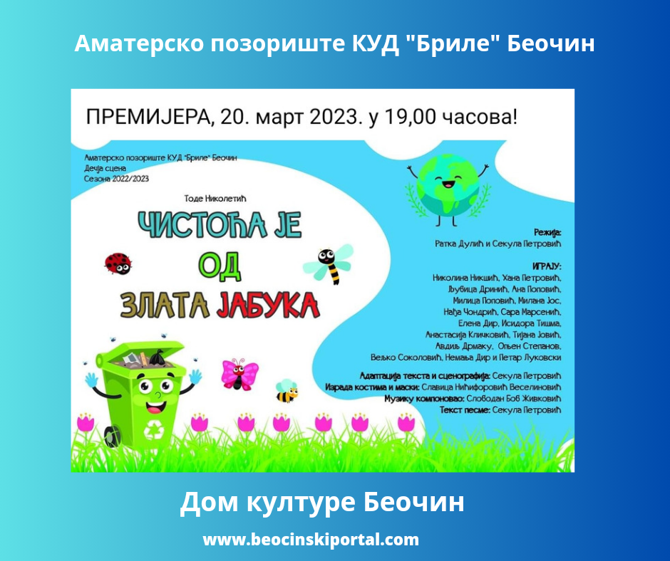 Premijera, ponedeljak 20.mart , Dom kulture u 19 časova .