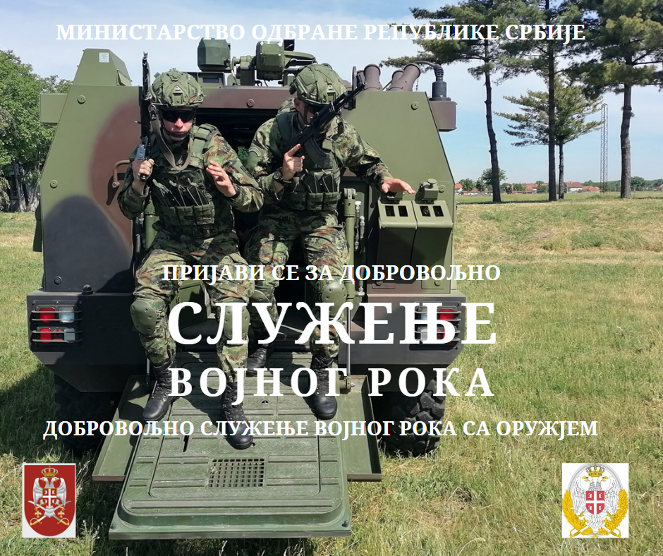 Ministarstvo odbrane Vlade Republike Srbije uputilo je poziv svim državljanima Srbije, starosti od 19 do 30 godina, koji žele da postanu pripadnici Vojske Srbije, da se prijave za dobrovoljno služenje šestomesečnog vojnog roka sa oružjem.